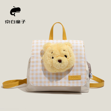 迪士尼正版小熊维尼双肩包毛绒玩具手提单肩背包卡通通勤女士包包