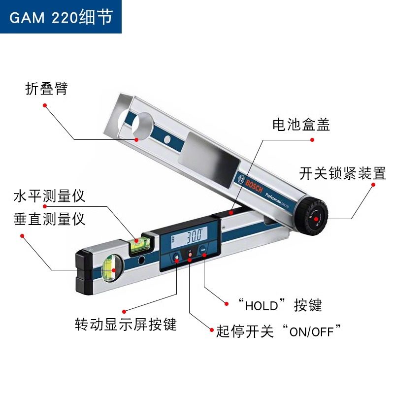 德国进口博世高精度水平尺GAM220/GIM60数字量房倾角度尺多功能坡