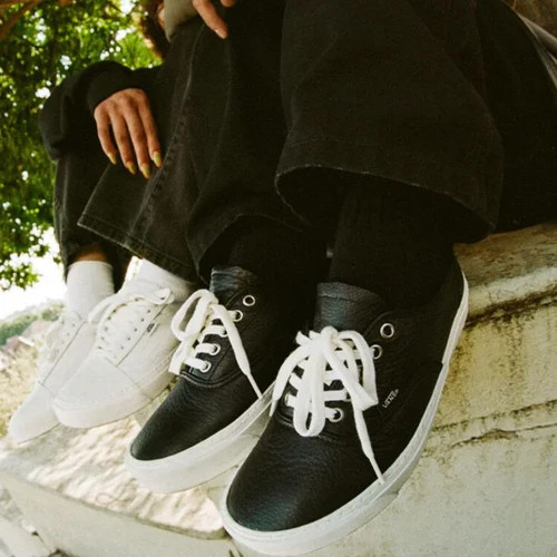Vans范斯 Old Skool LUX 黑白荔枝皮低帮商务休闲板鞋VN000CZMOUN