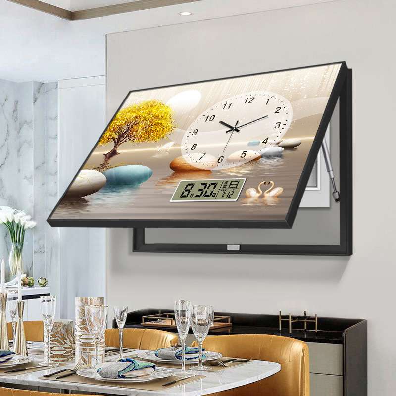 电表箱装饰画带万年历钟表遮挡配电箱电闸电源开关盒挂画轻奢风