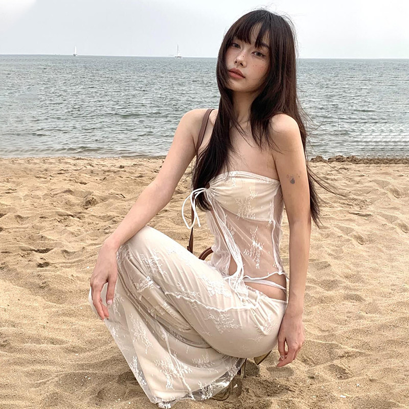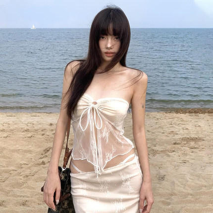 #Sisjuly# 她泰少女温柔蕾丝沙滩度假抹胸 小众网纱长裙两件套女