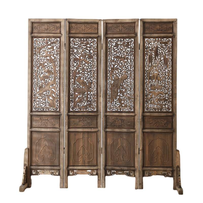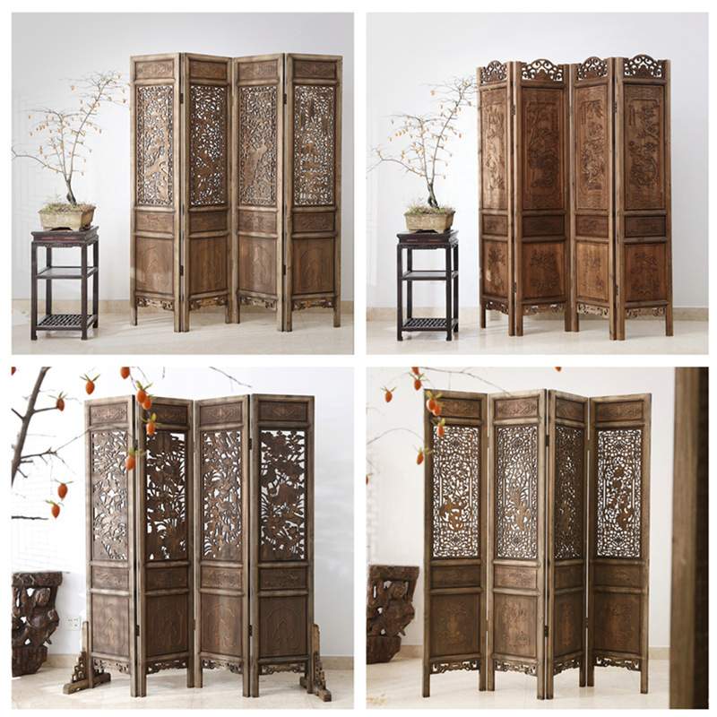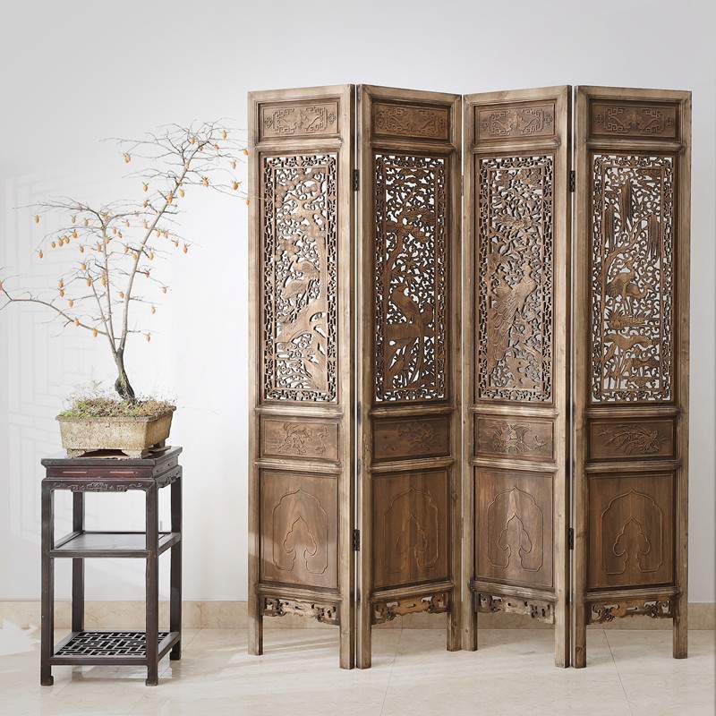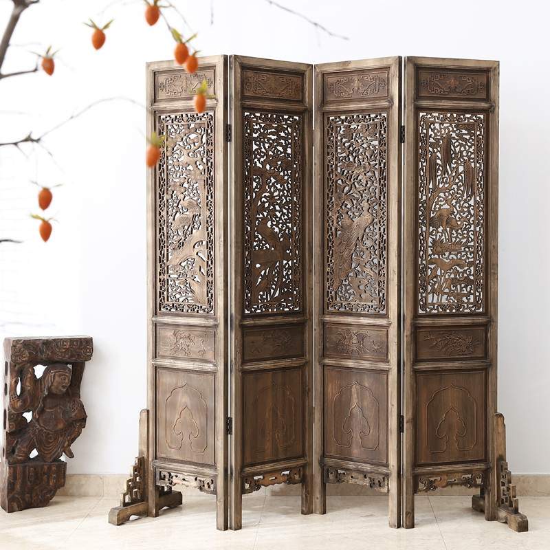 中式仿古实木屏风隔断客厅镂空雕花古风折屏东阳木雕移动折叠复古