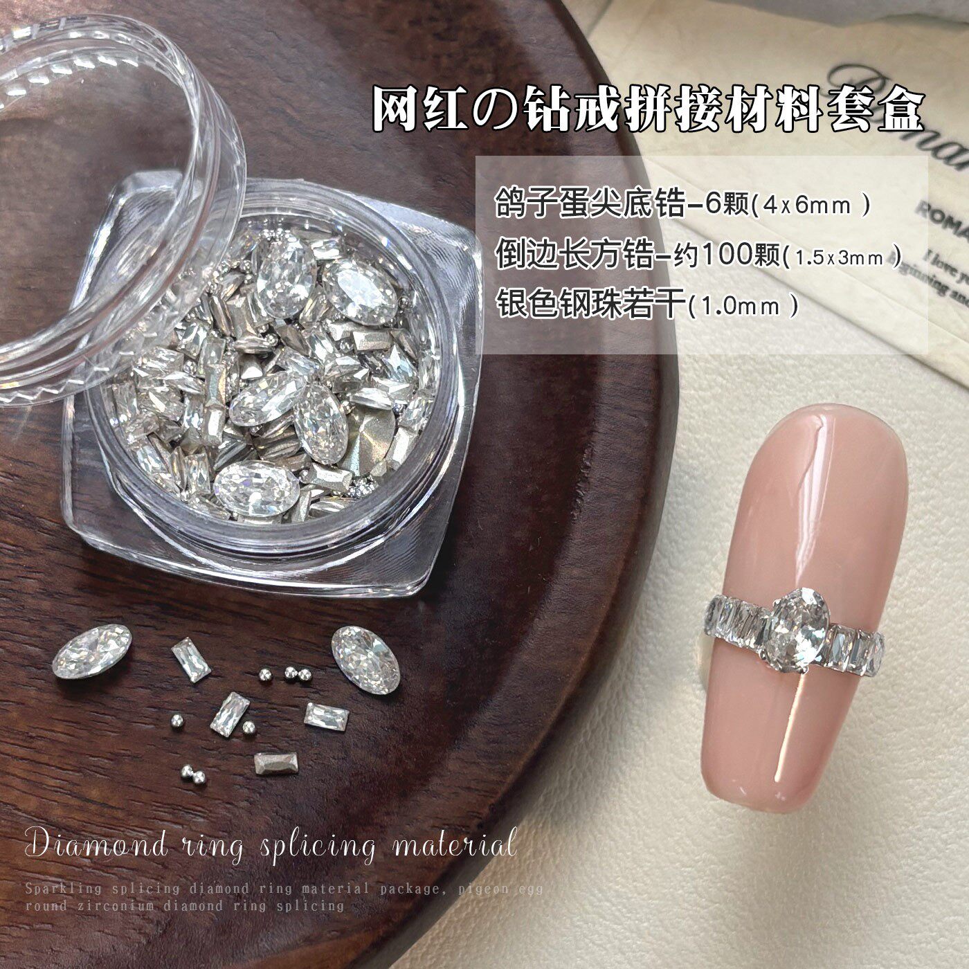 锆石钻戒拼钻材料包美甲饰品爆闪圆形鸽子蛋长条尖底裸钻钢珠配饰