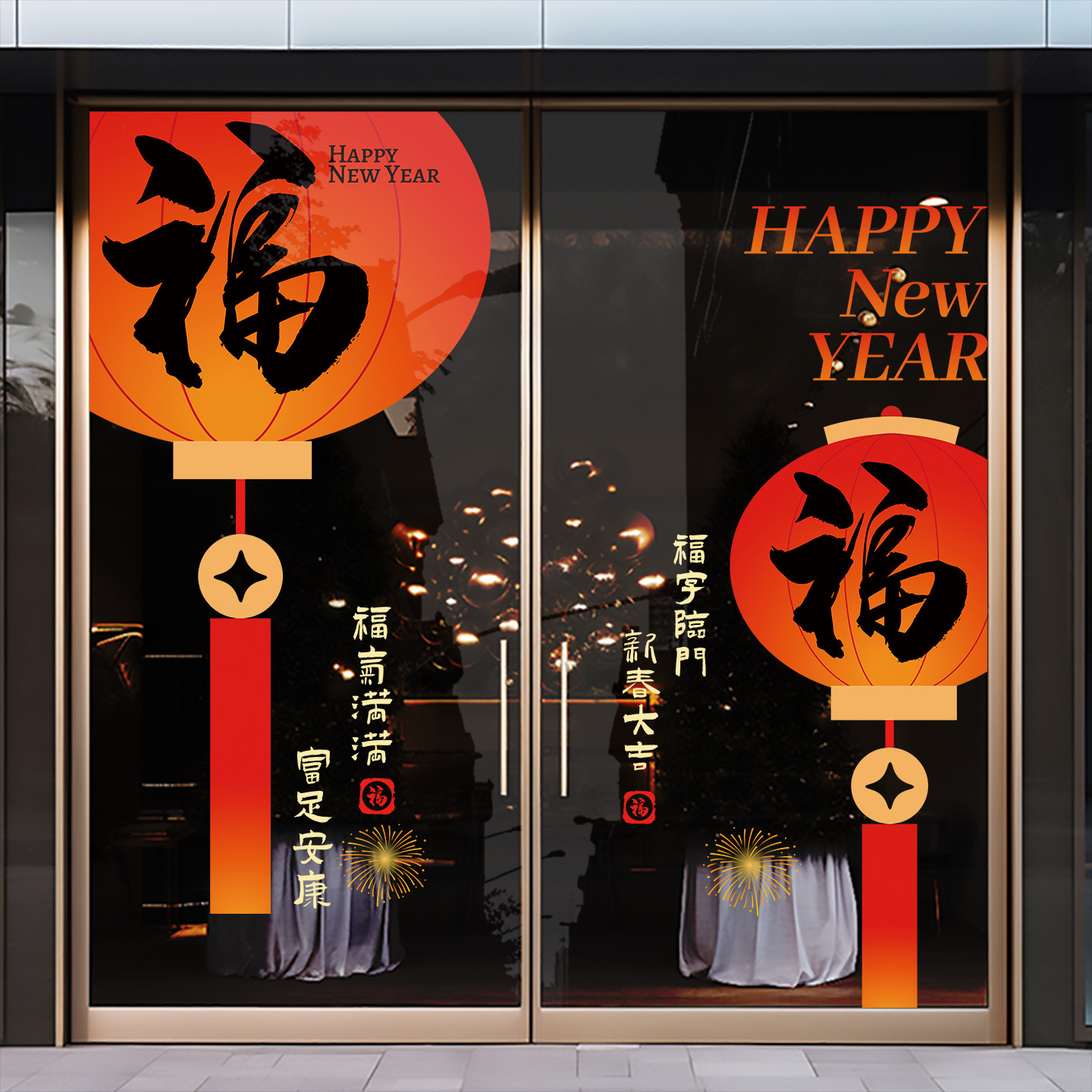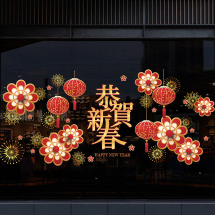 新年门贴过年装饰静电贴纸