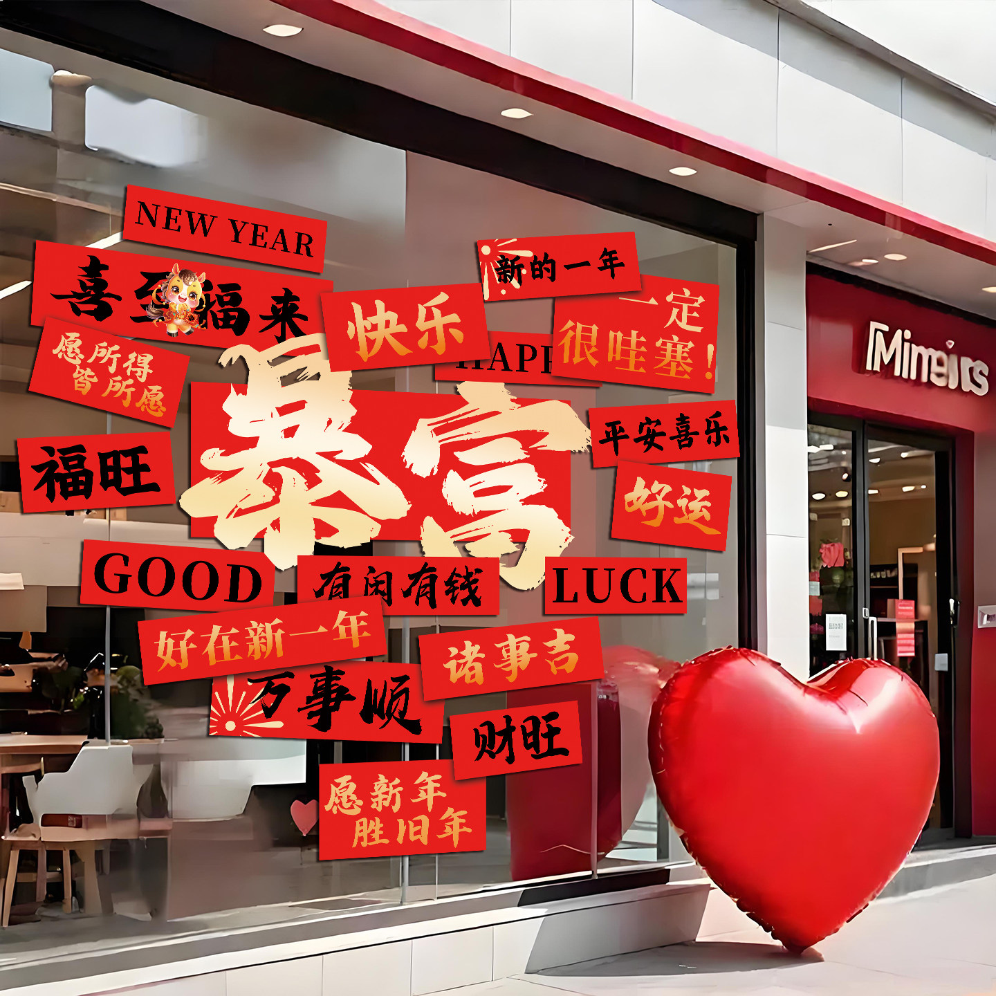 马年窗花春节玻璃贴静电贴窗贴橱窗布置2026新年门贴过年装饰贴纸