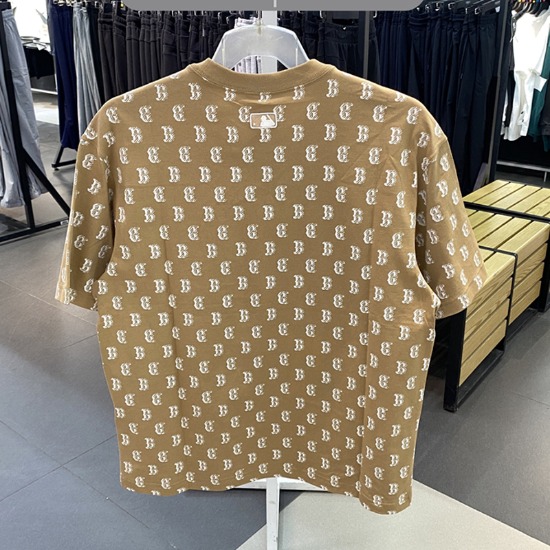 MLB情侣新款短袖男女NY复古老花满标圆领休闲运动T恤 3ATSM0243
