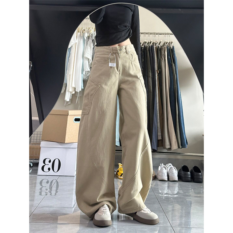 大码胖MM宽松设计感牛仔裤女2025秋冬新款高腰修身显瘦阔腿直筒裤