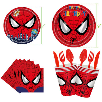 现货蜘蛛侠城市英雄主题儿童生日纸盘纸杯纸巾桌布餐具派对装饰品