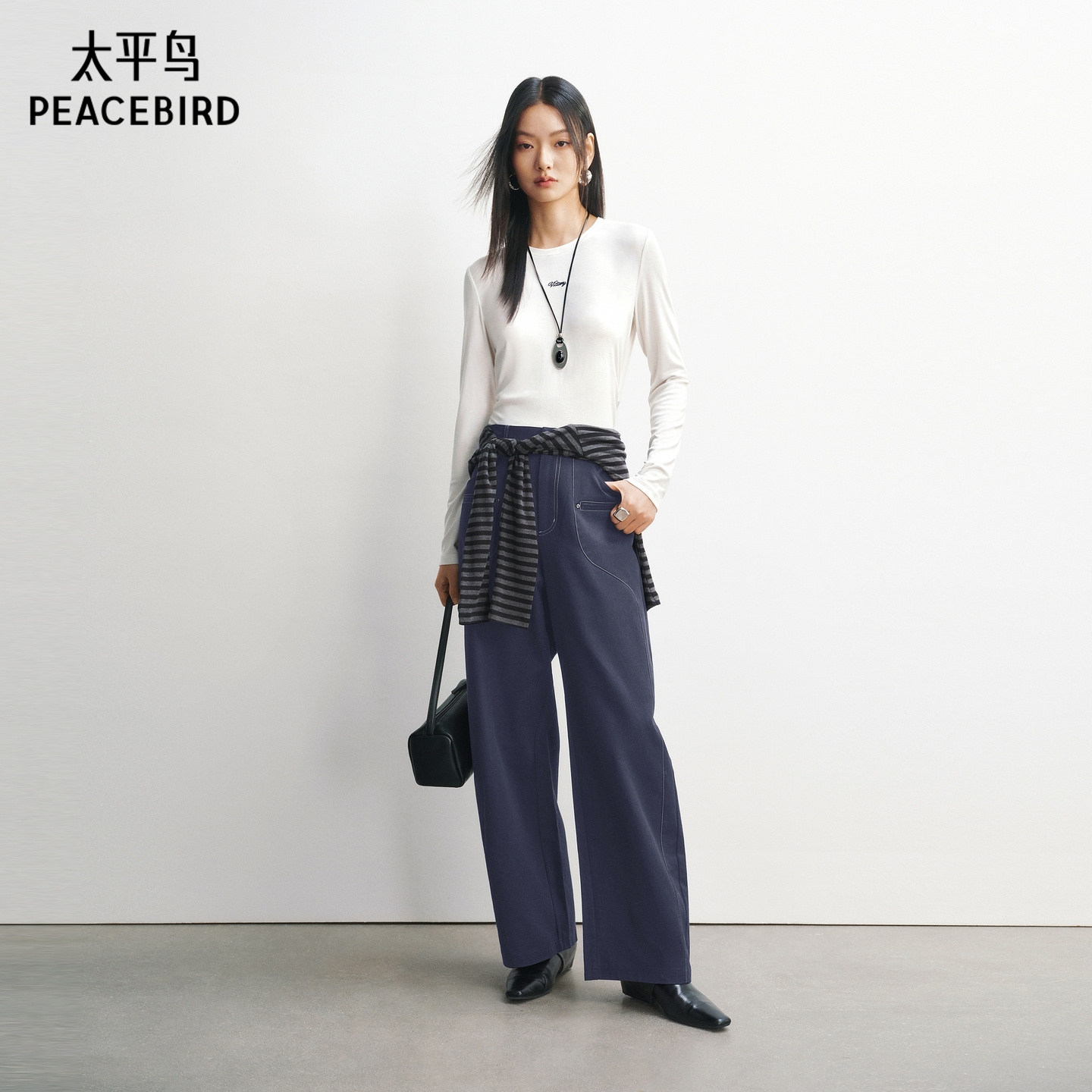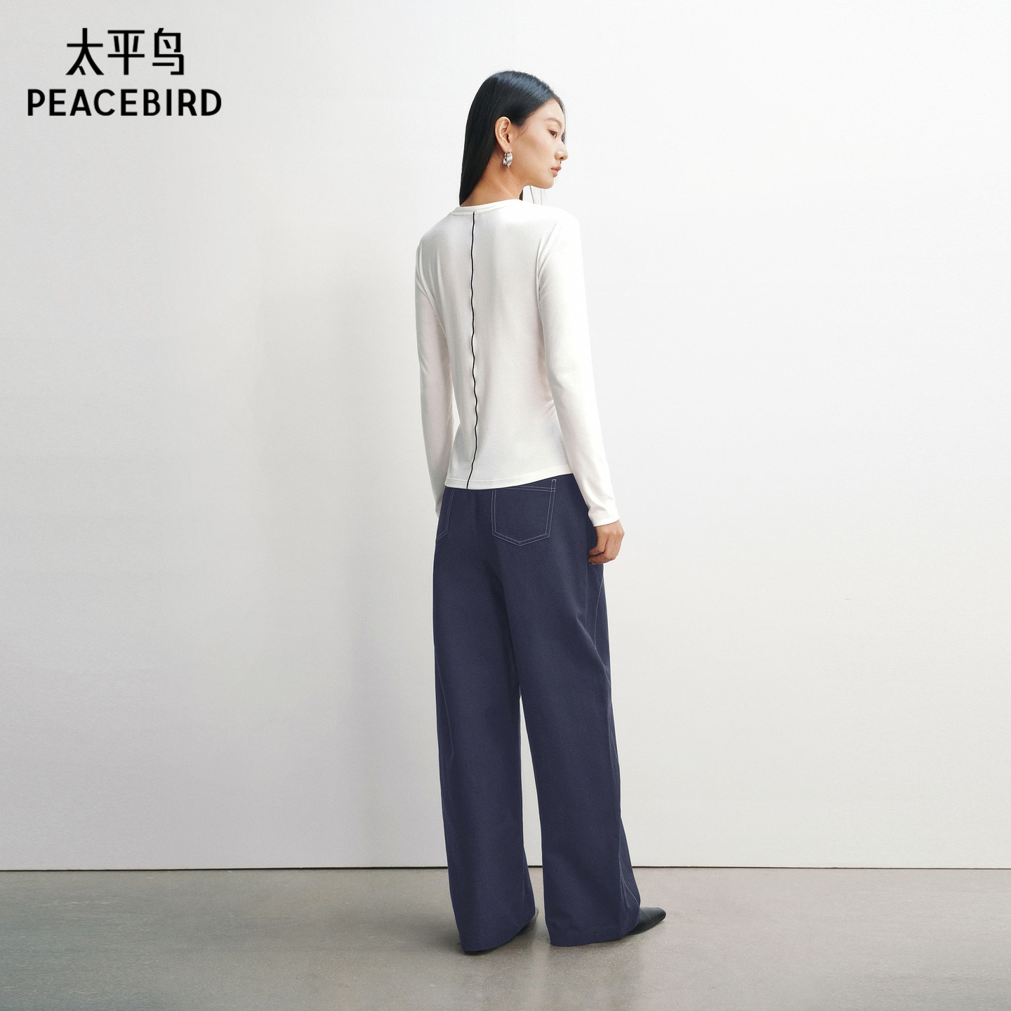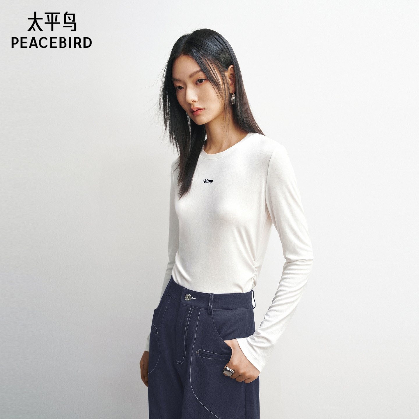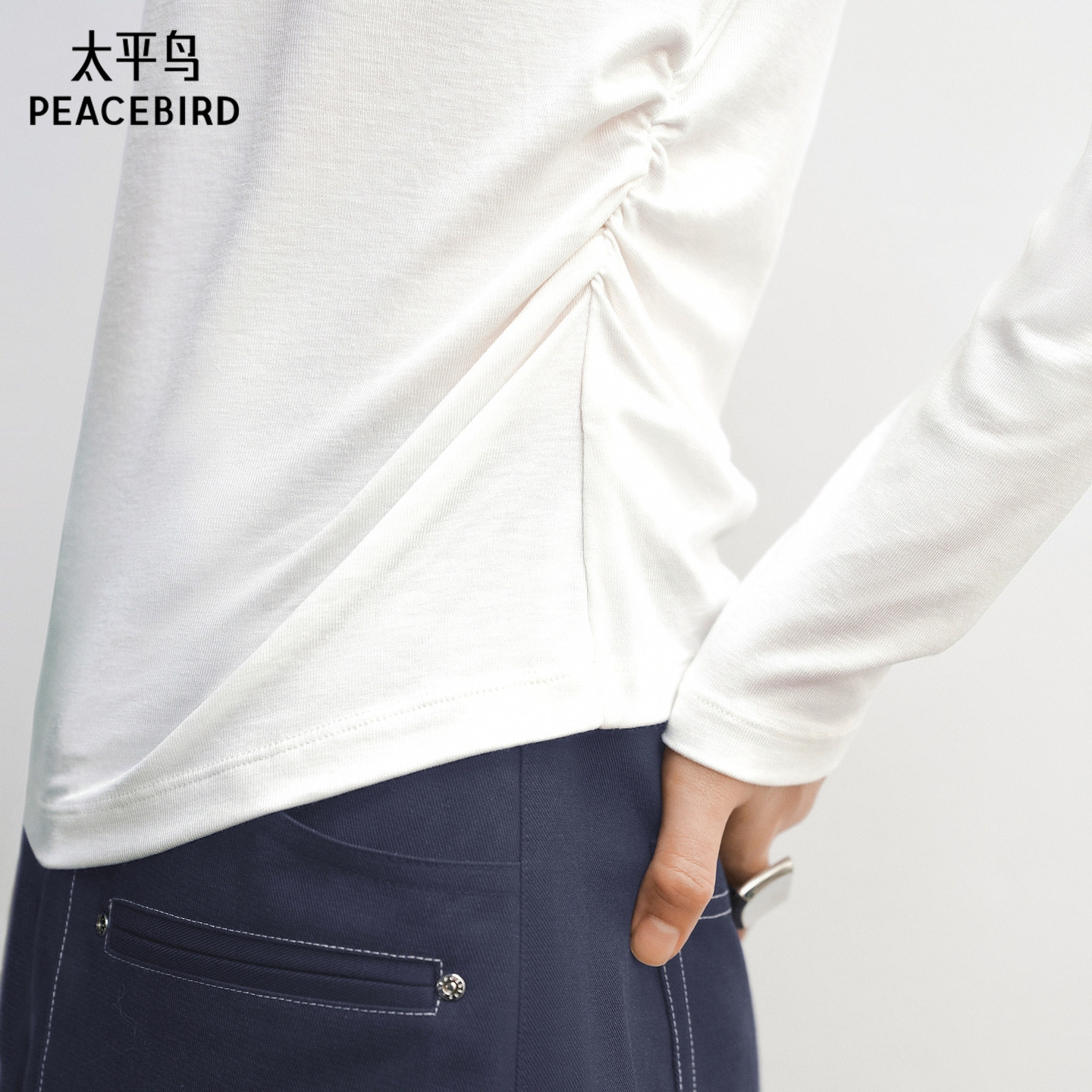 【商场同款】太平鸟26春季新款休闲腰间抽褶修身长袖T恤A3CPG1251