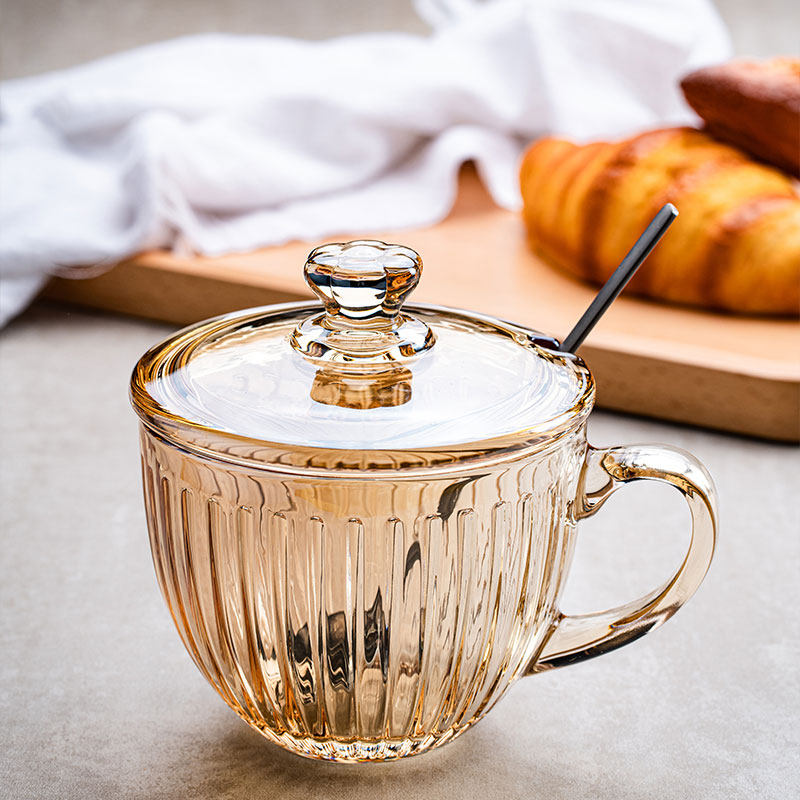 水杯玻璃杯带把手带盖耐高温无铅喝水杯家用女高颜值燕麦早餐杯子