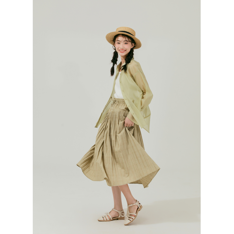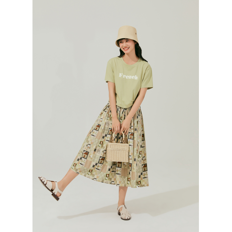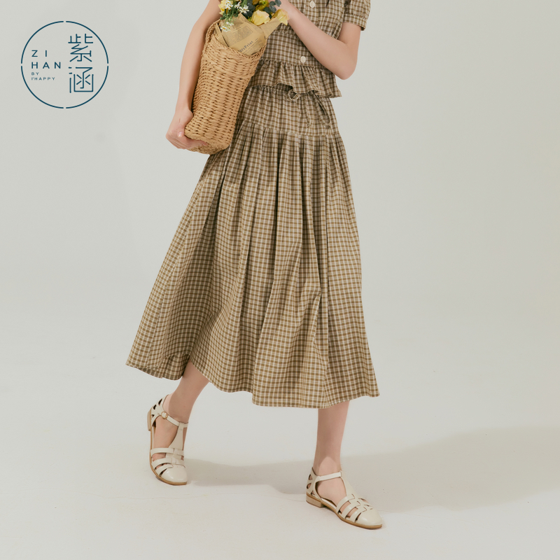 紫涵文艺复古半裙女夏季新款松紧腰a字半身裙中长裙简约百搭裙子