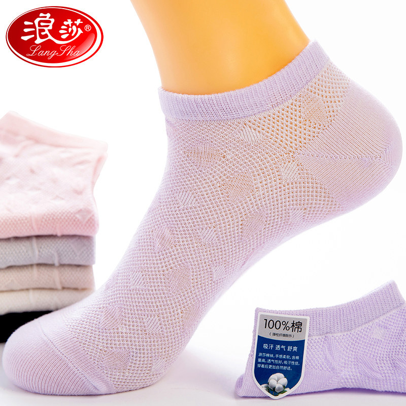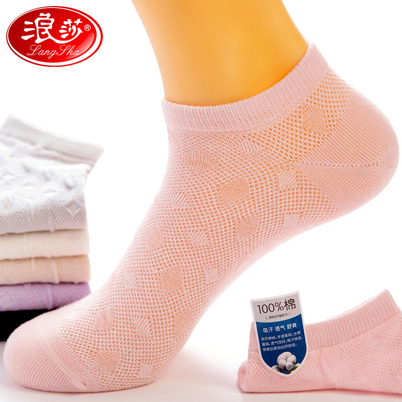 浪莎袜子女纯棉短袜浅口低帮短筒女袜防臭透气全棉春夏季薄款船袜