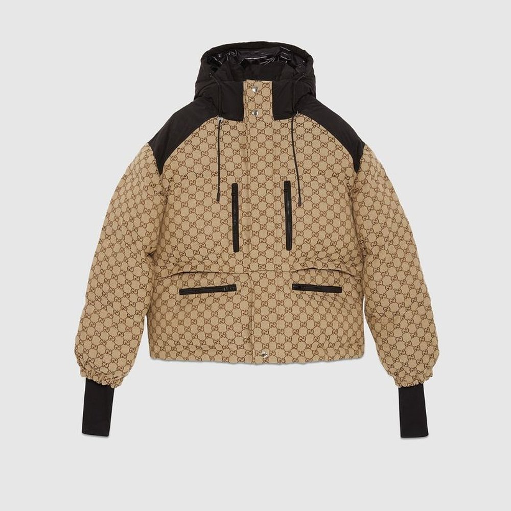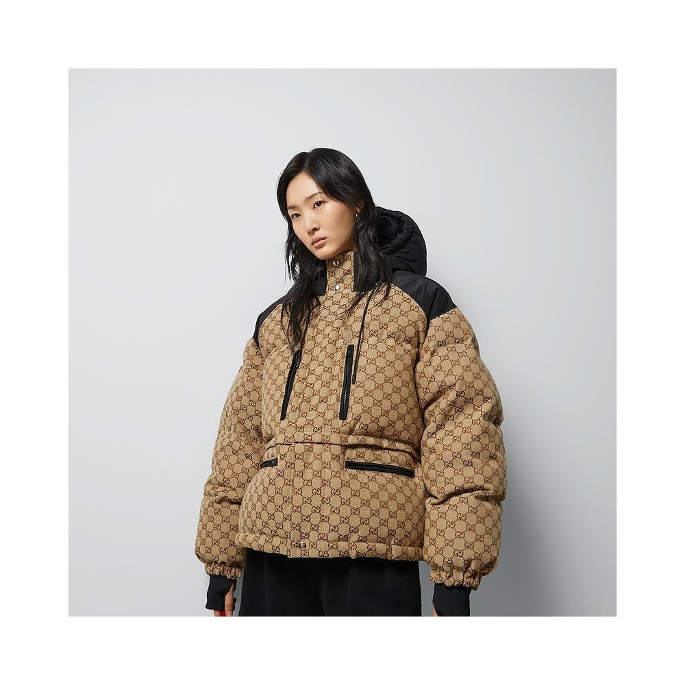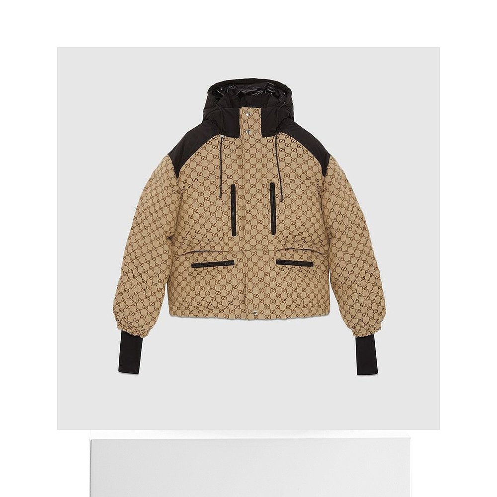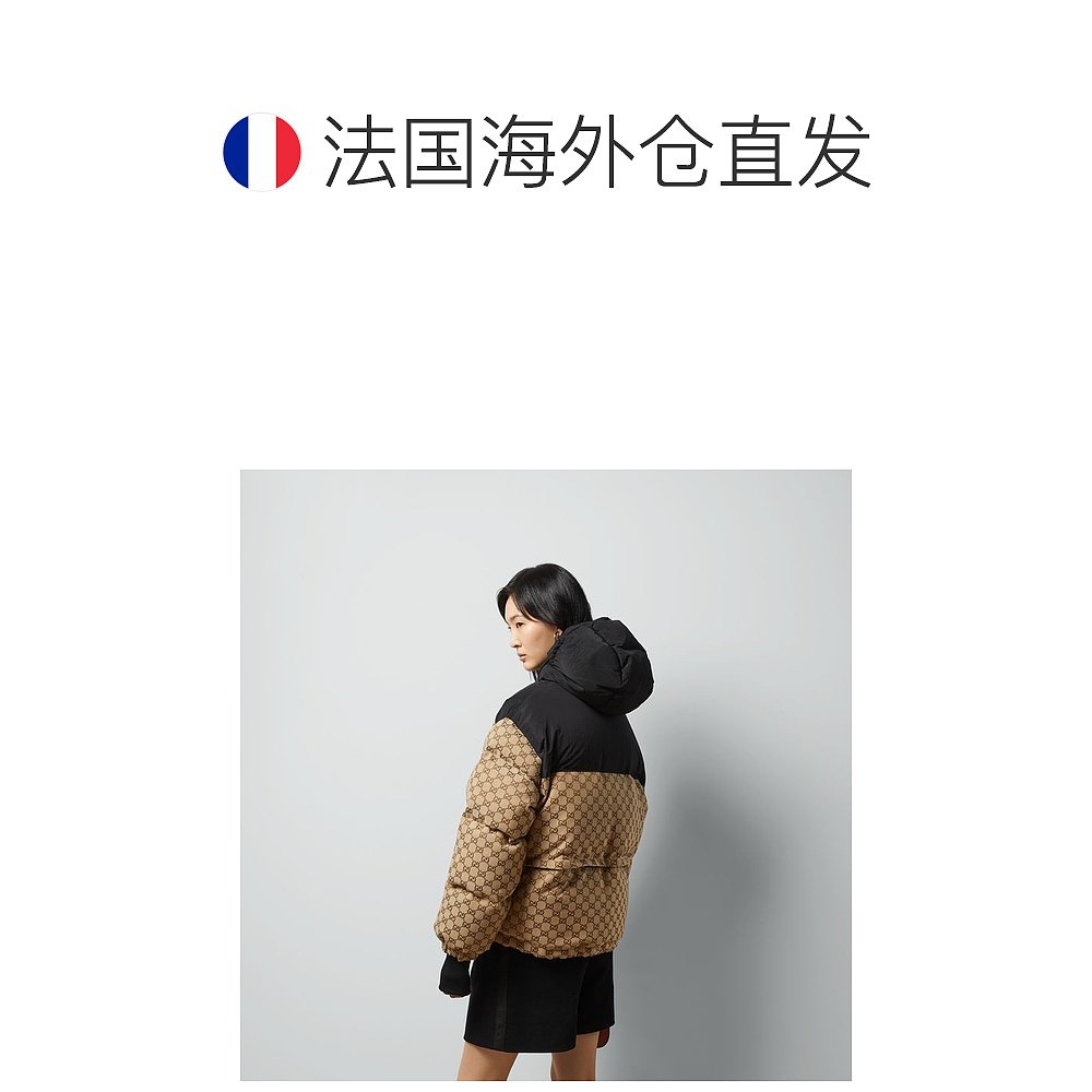 自营欧洲直邮Gucci古驰女士骆驼和乌木GG帆布飞行员夹克外套