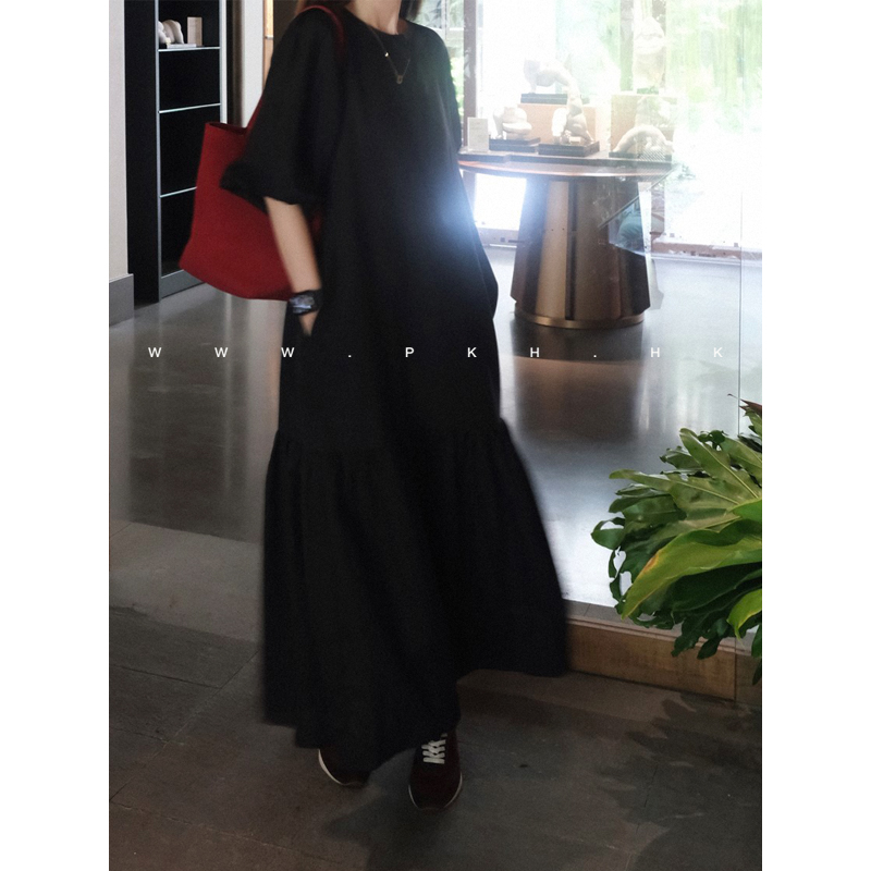 PKH.HK特 春 BI入清单里不能少的时髦长线条连衣裙天丝苎麻黑白色
