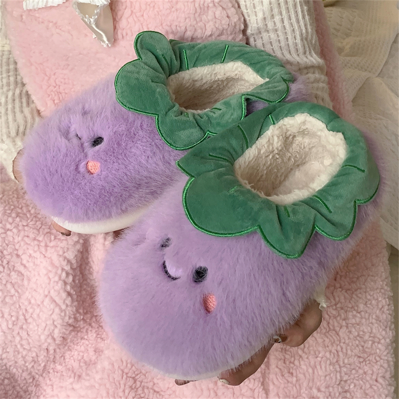 番茄茄子保暖防滑包跟室内毛绒鞋女秋冬季厚底可爱居家儿童棉拖鞋