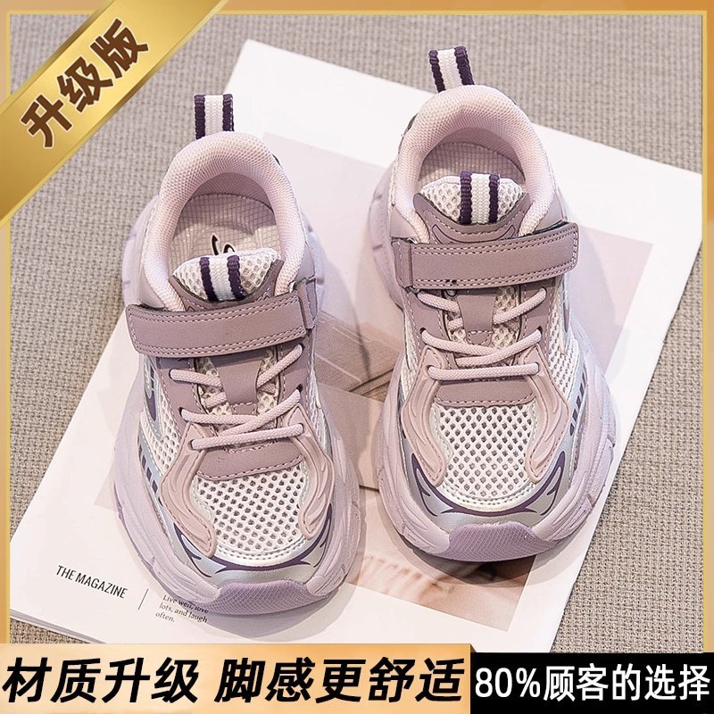 女童鞋子儿童跑步鞋2025春夏季新款女孩网面透气老爹鞋时尚运动鞋