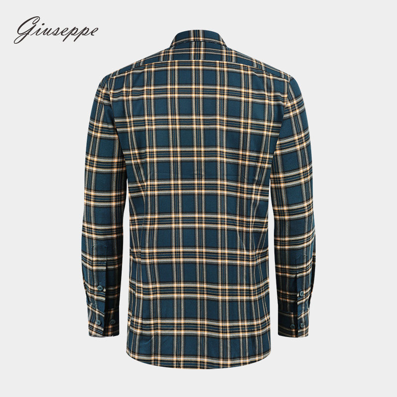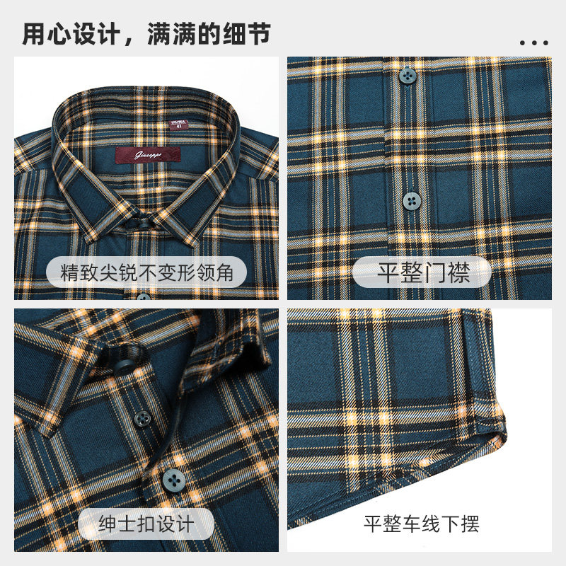 乔治白秋冬男士时尚休闲橘蓝格尖领修身绵羊毛厚长袖衬衫