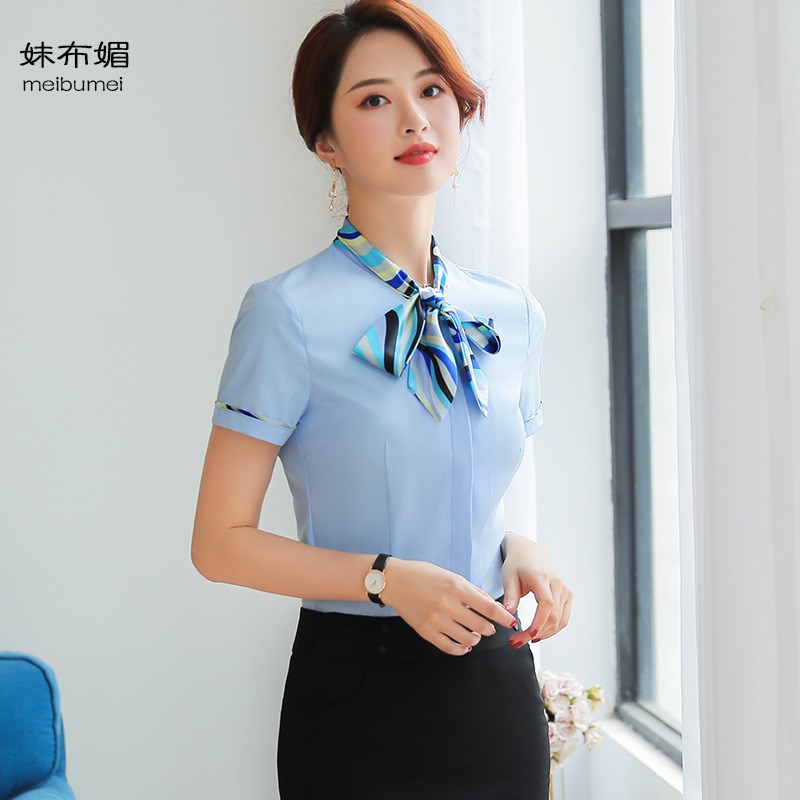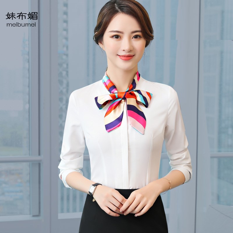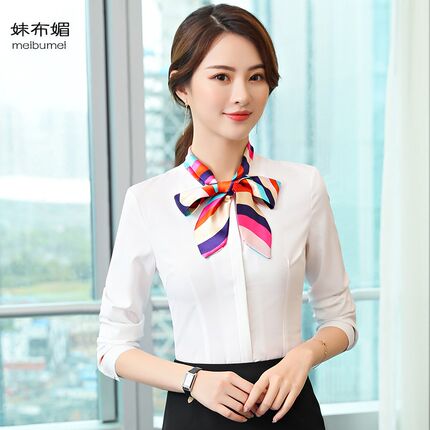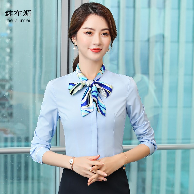 春秋长袖女衬衫修身美容师酒店工作服职业装蝴蝶结飘带领女装衬衣
