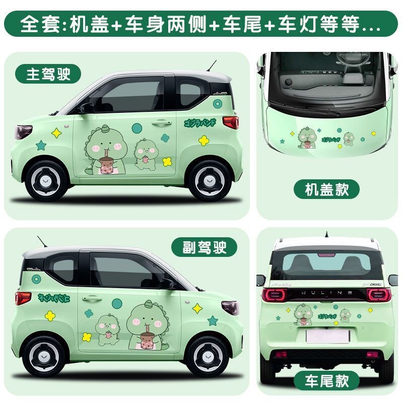 五菱宏光miniev恐龙车贴欧拉莱威奇瑞eq宝骏可爱小青龙装饰汽车贴