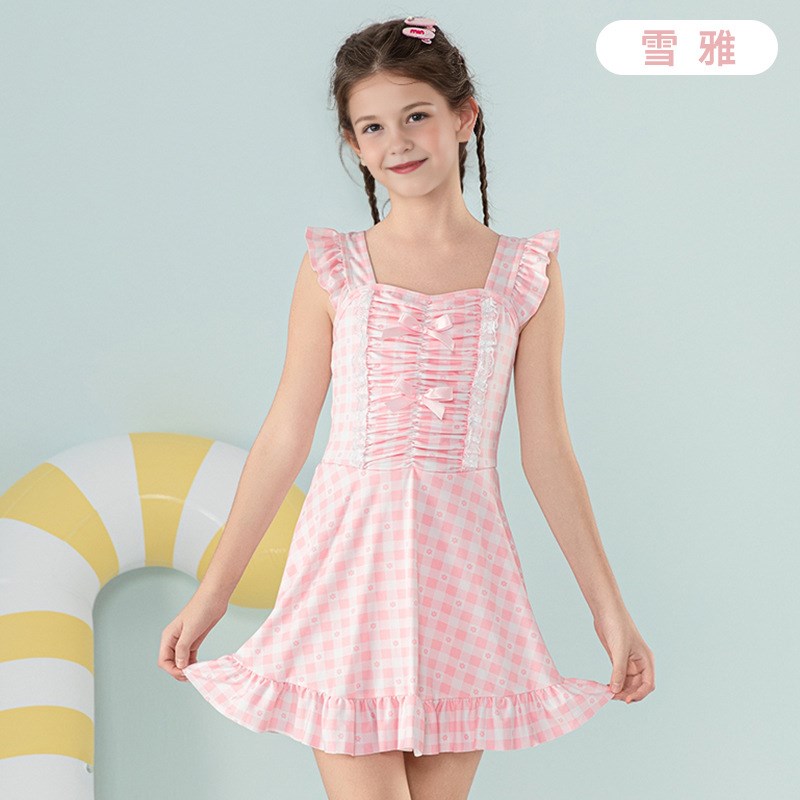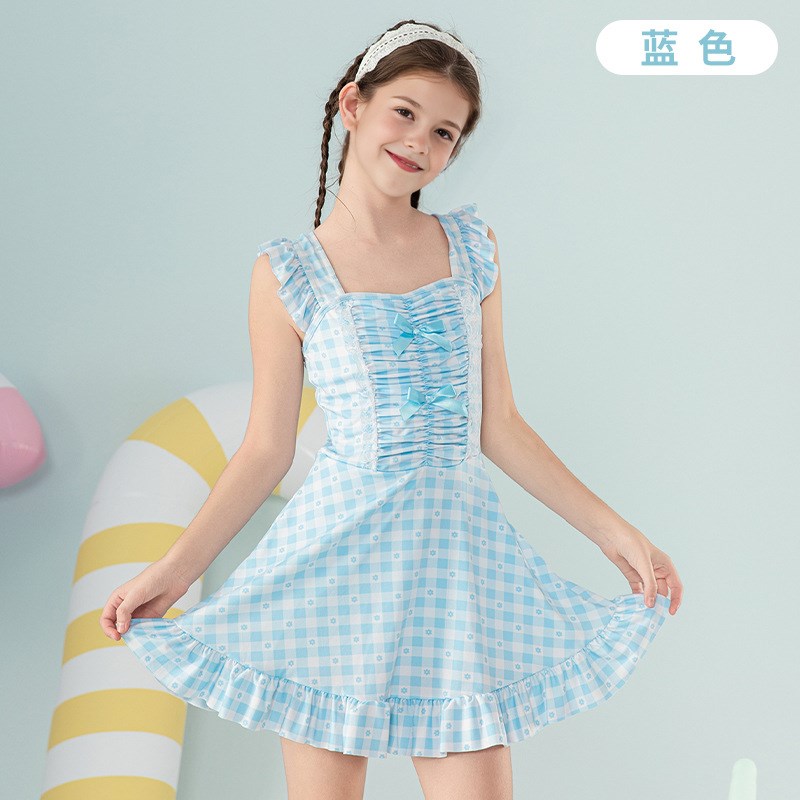 女童连体泳衣夏季女孩公主风2025新款女大童甜美格子洋气泳装