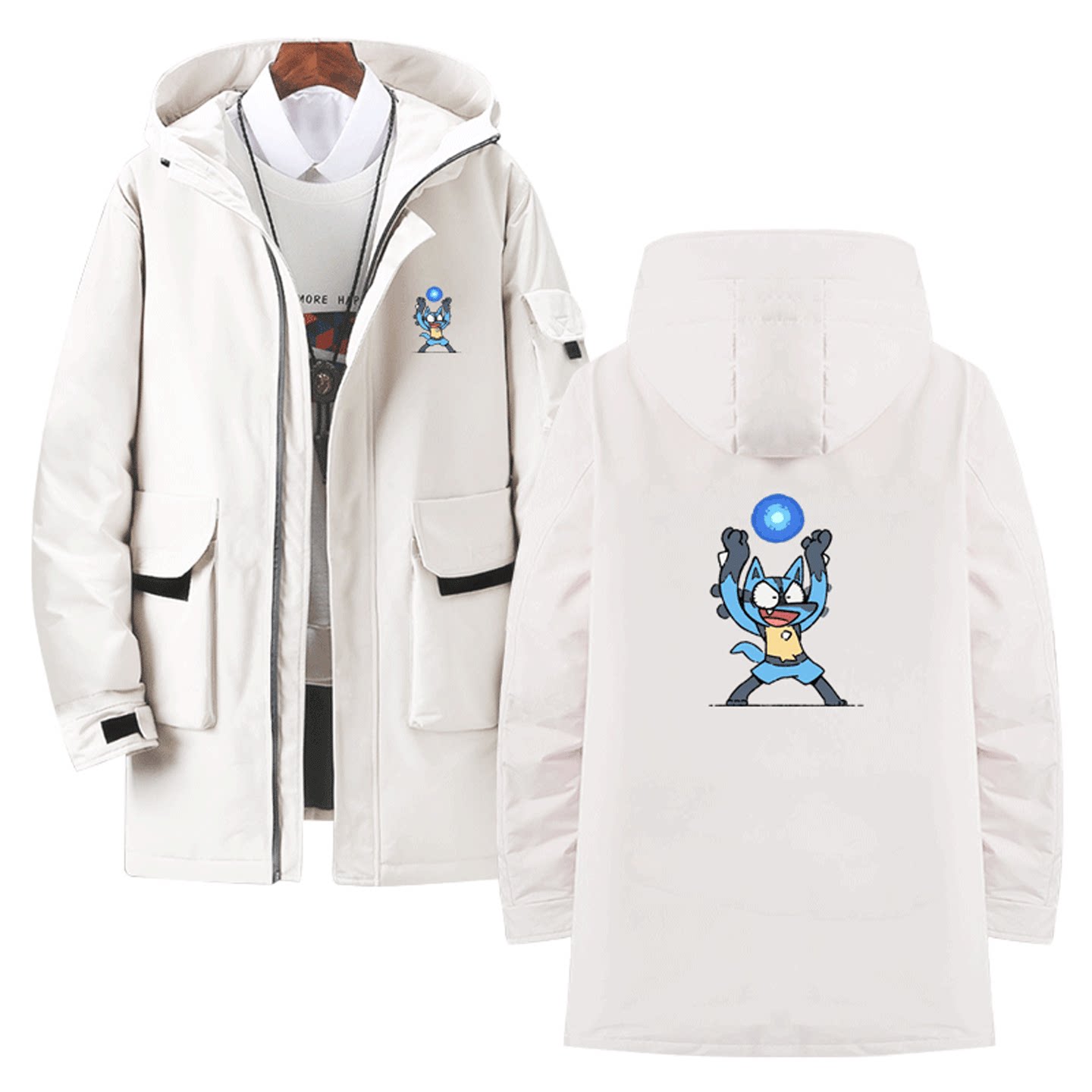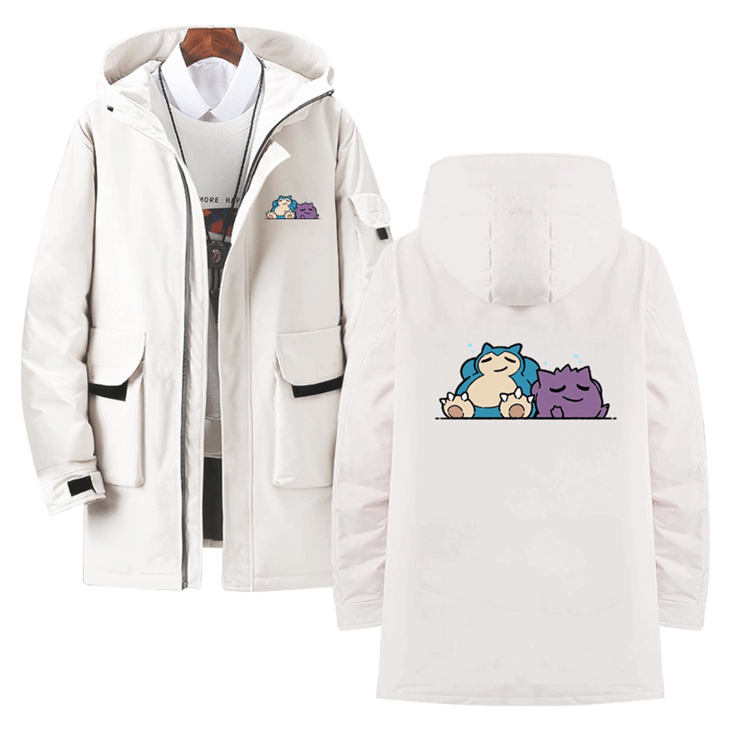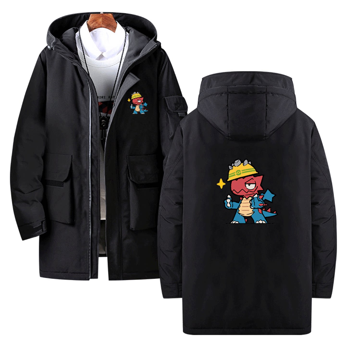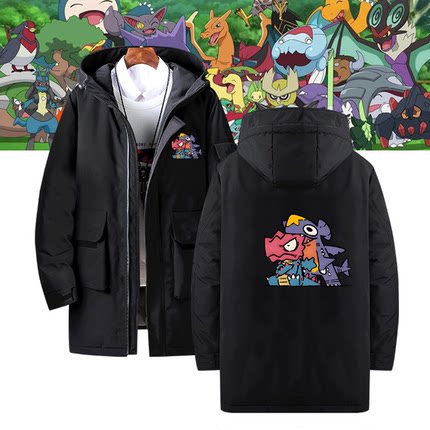 宝可梦联名喷火龙皮卡丘神奇宝贝卡通可爱可定制外套中长款羽绒服