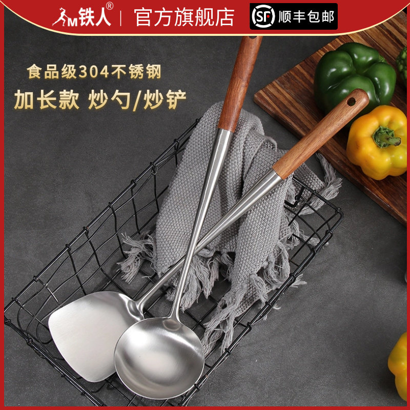 铁人30不锈钢炒勺铁锅炒铲家用炒菜锅铲子长木柄厨师专用铁锅铲