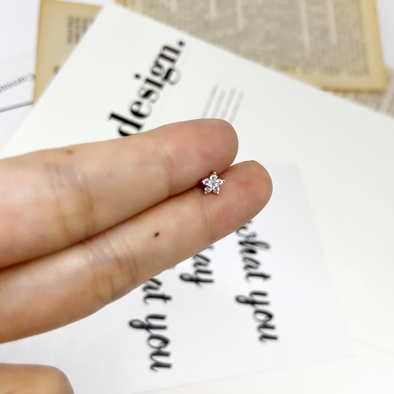 防扎防敏无需耳堵隐形钻石星星耳钉精致92纯银养耳洞日常简约耳饰