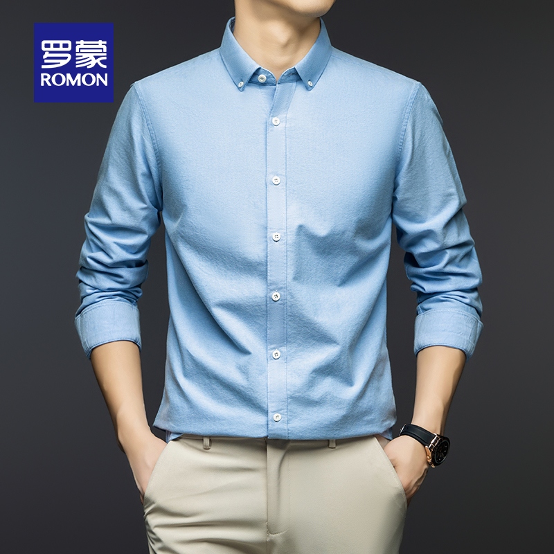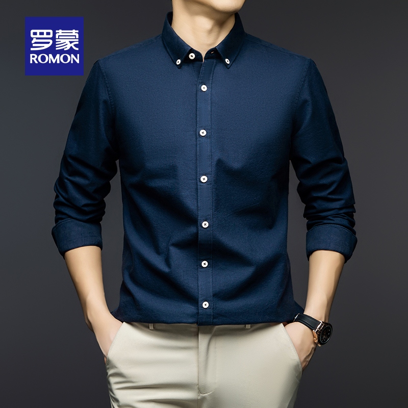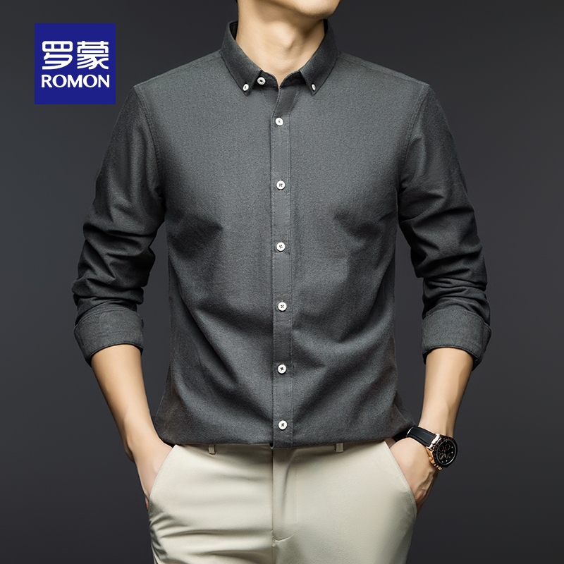【纯棉】罗蒙男士长袖衬衫2025秋季新款商务职业工装修身休闲衬衣