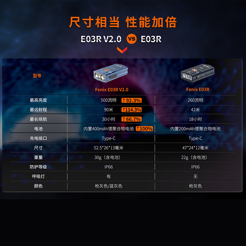 Fenix菲尼克斯 E03R V2.0钥匙扣小手电防水EDC强光充电迷你手电筒