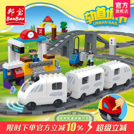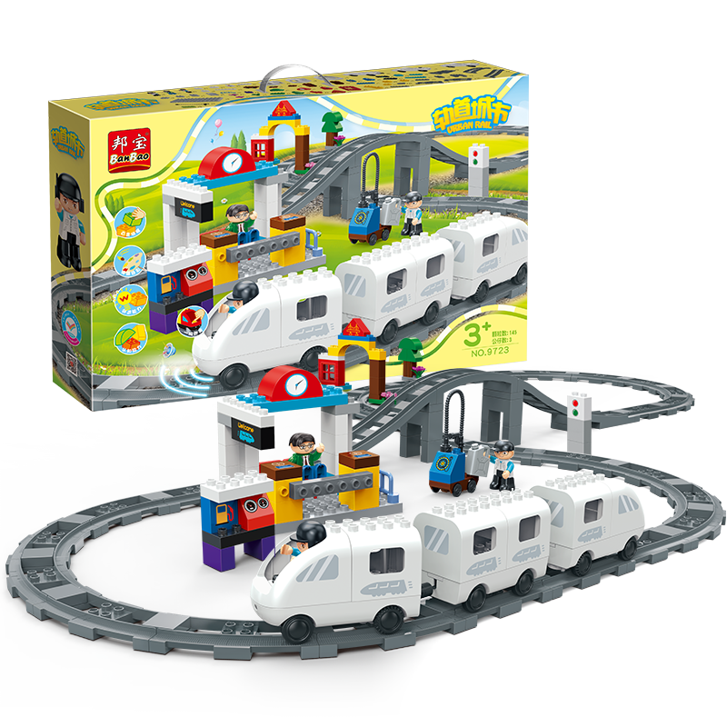 邦宝大颗粒积木轨道车电动玩具儿童小火车益智拼装新能源高铁9723