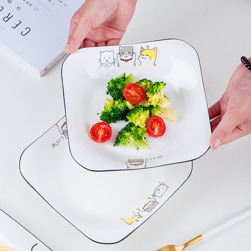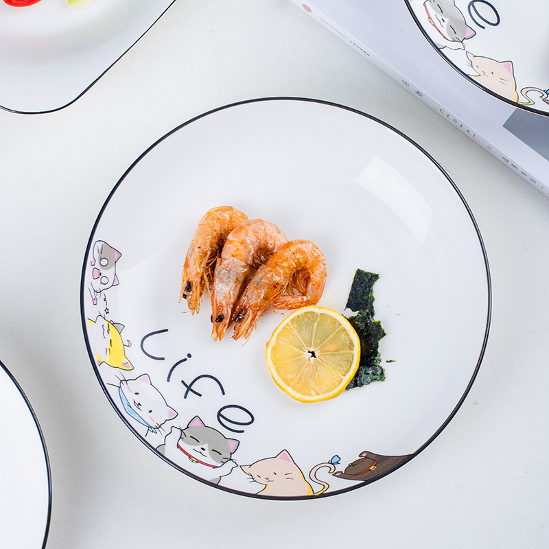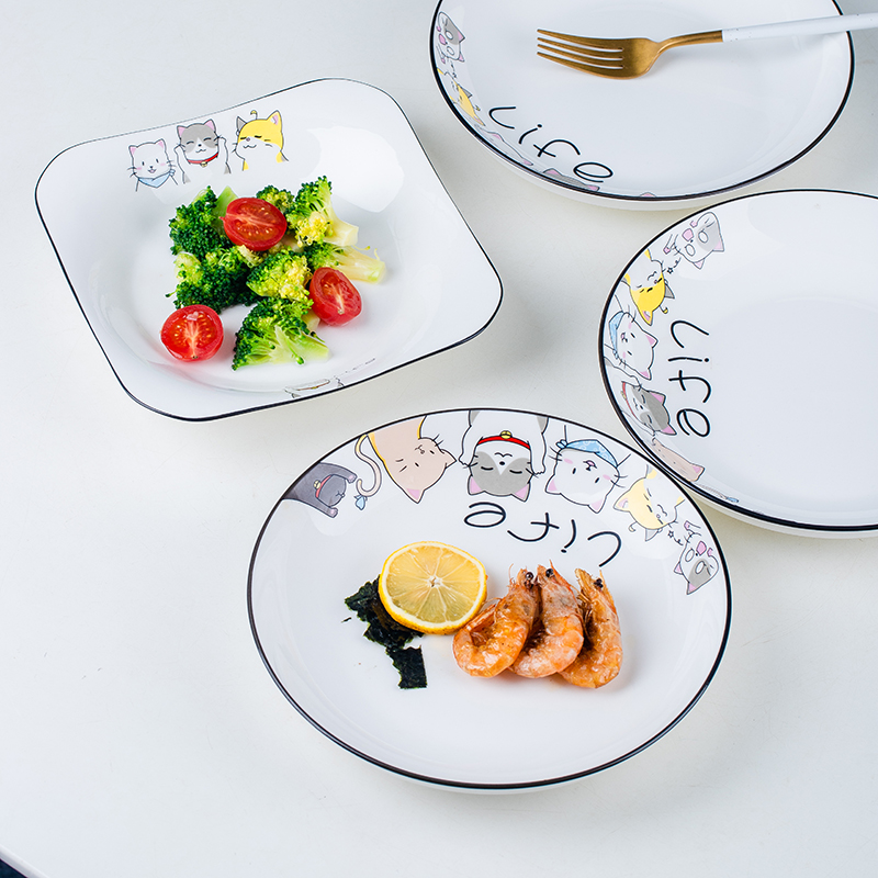 4只装陶瓷猫咪盘子家用菜盘子碟盘饭盘汤盘创意网红餐具组合套装