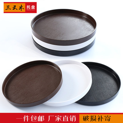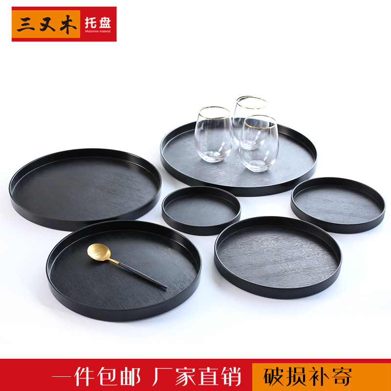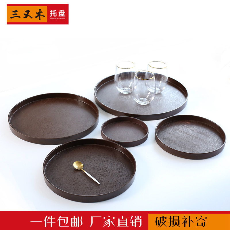 加厚托盘密胺仿木纹水杯盘圆形水果盘家用酒店托盘餐具零食盘