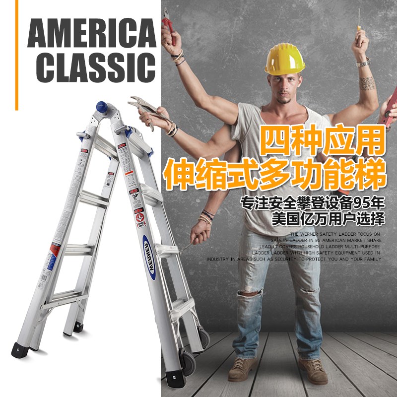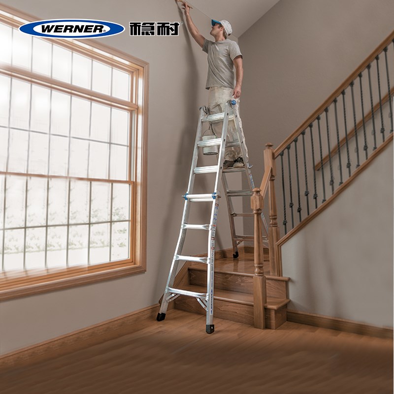 werner稳耐梯子家用铝合金折叠伸缩多功能人字梯升降梯加厚便携