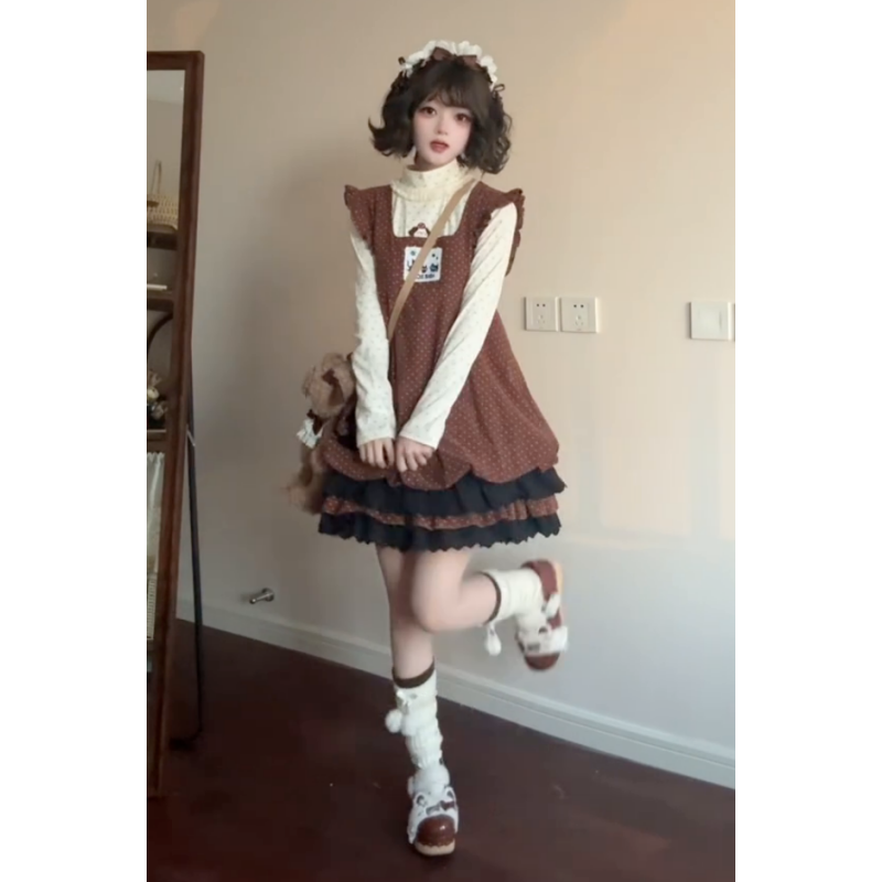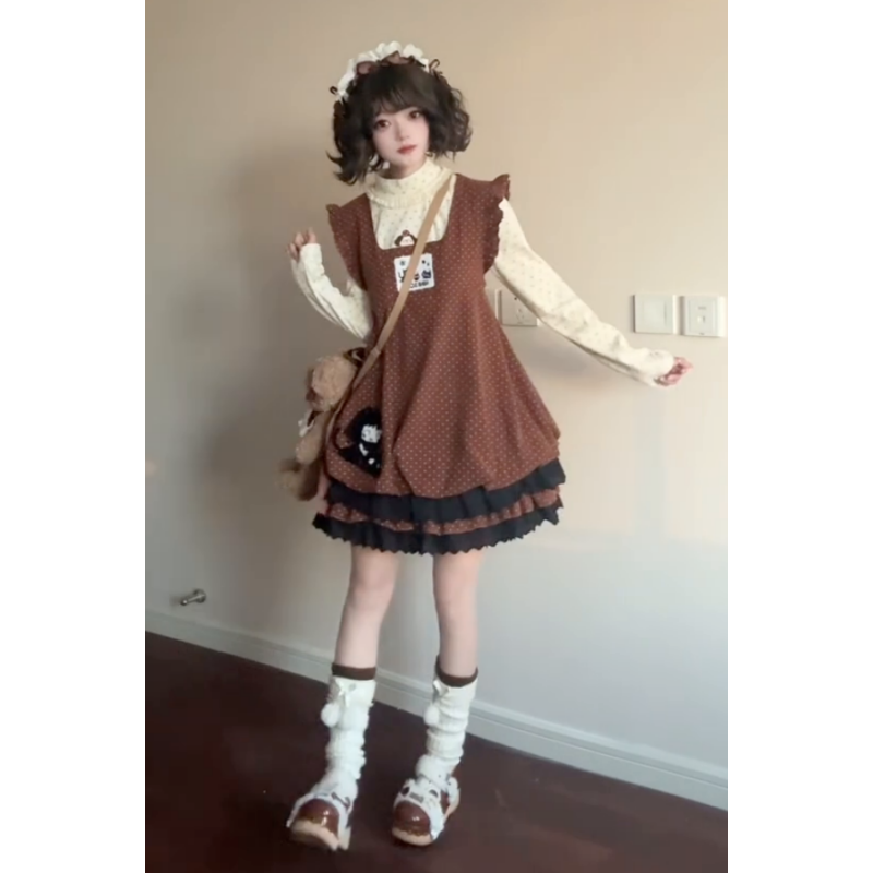 学院风甜美可爱减龄小个子连衣裙女搭配打底长袖上衣早秋新款套装
