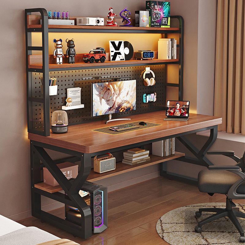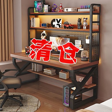实木电脑桌卧室家用办公桌台式电竞桌简约学生书桌书架一体学习桌