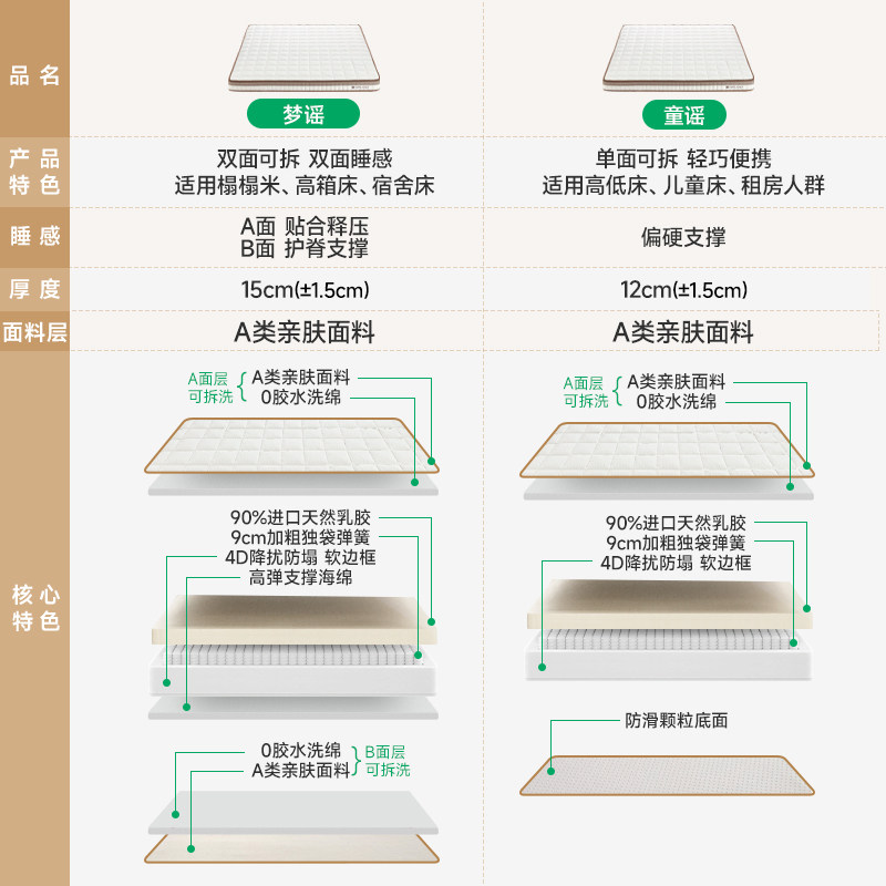 【梦谣】雅兰独立弹簧床垫可拆洗乳胶家用儿童席梦思薄款榻榻米垫