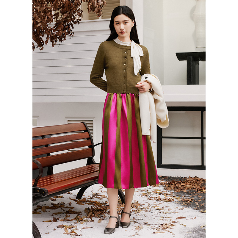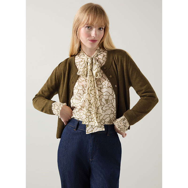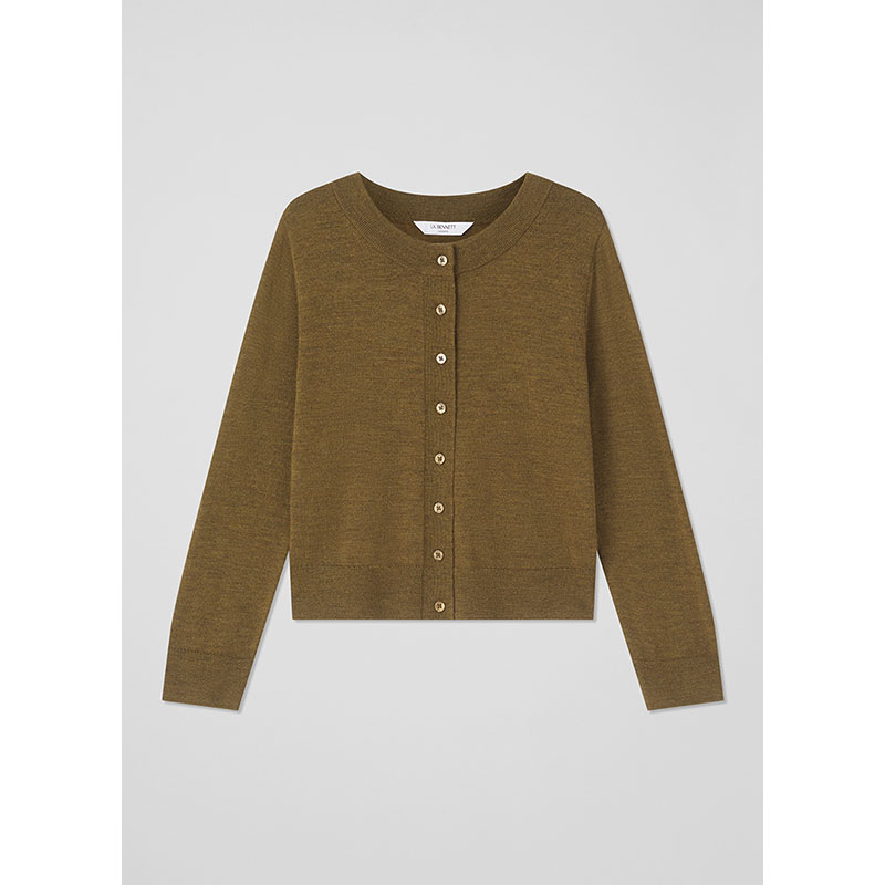 lkbennett深绿色针织开衫女秋新款简约通勤高级感圆领纯色