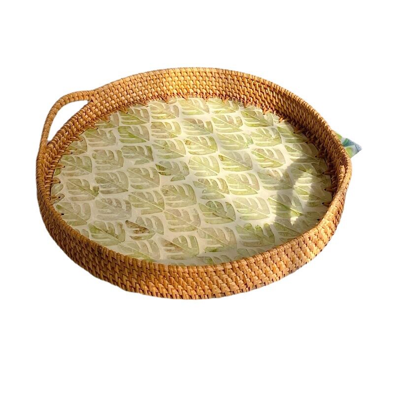 藤编托盘贝壳水果盘编织收纳托盘早餐篮日式竹编面包筐点心创意篮