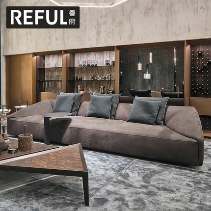 粤府高档奢侈意大利真皮沙发进口磨砂皮整装极简别墅皮艺沙发N111
