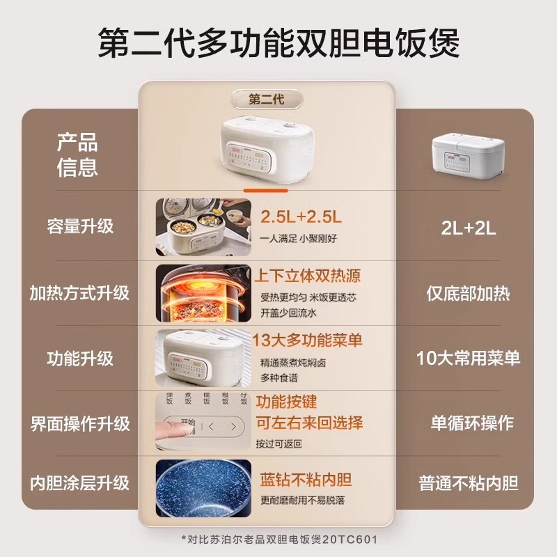 苏泊尔电饭煲蓝钻不粘双胆1-2人
