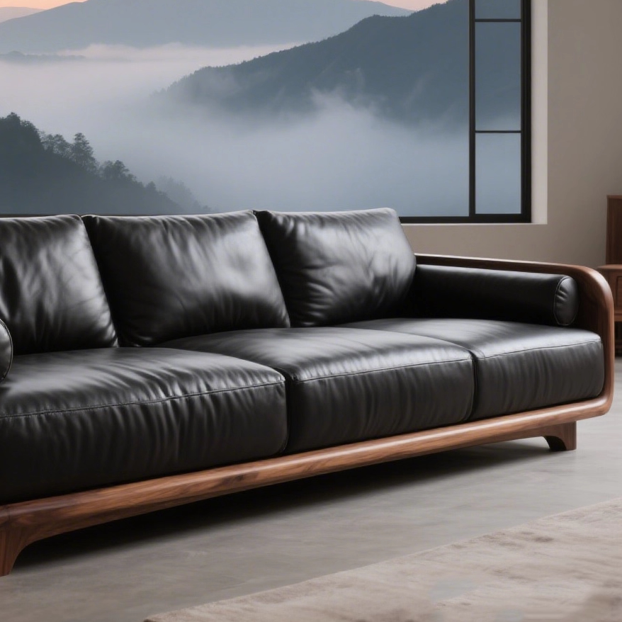 新中式胡桃木直排沙发2026新款简约小户型客厅高端实木皮艺沙发