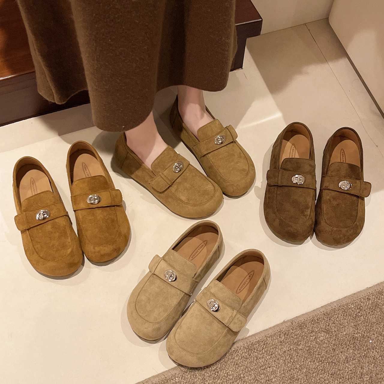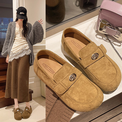 英伦风圆头小皮鞋女2026春秋新款百搭内增高勃肯鞋休闲一脚蹬单鞋