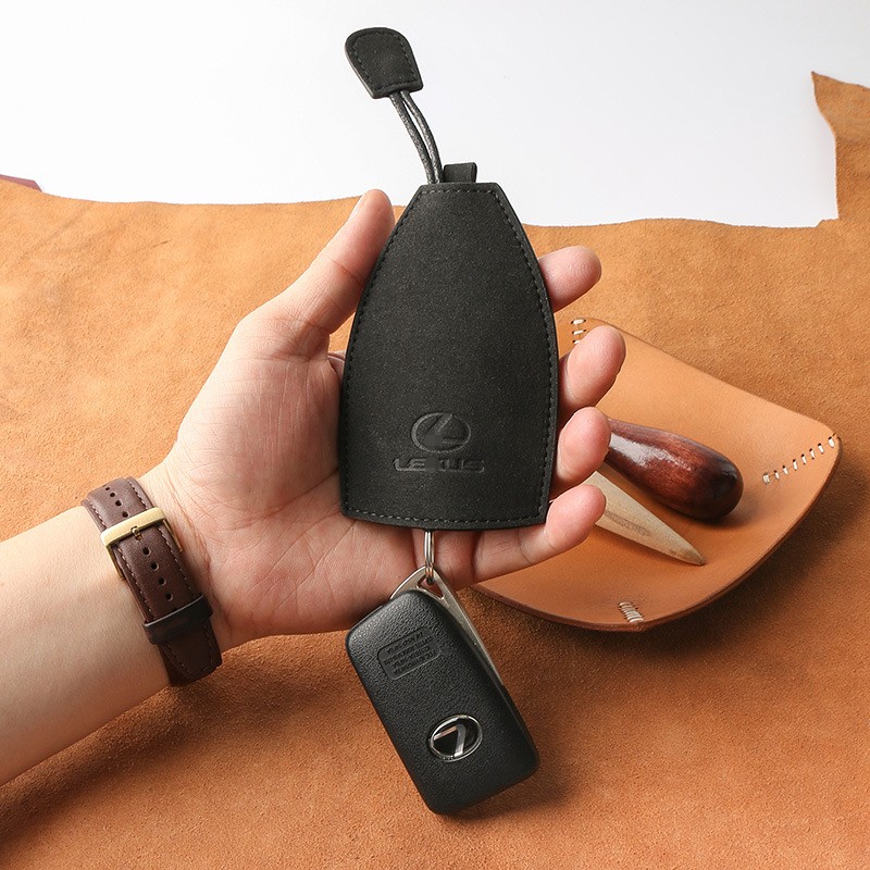 2023翻毛皮汽车钥匙包抽拉保护通用钥匙套大众奔驰宝马奥迪扣座垫