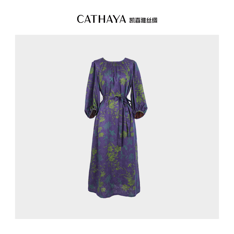 CATHAYA/凯喜雅中袖红云纱连衣裙女士气质时尚新款FQK2FLJM347