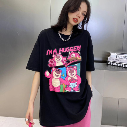 黑色印花中长款短袖t恤女2023