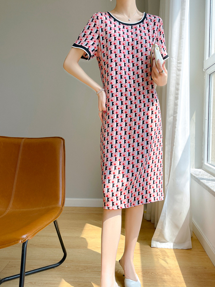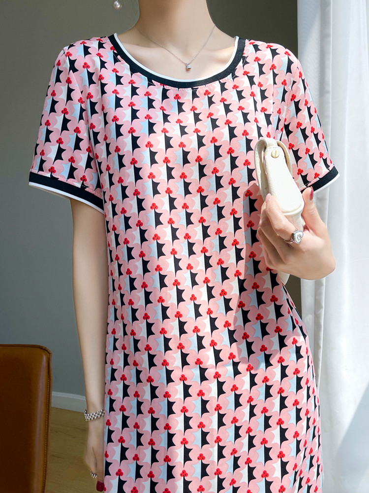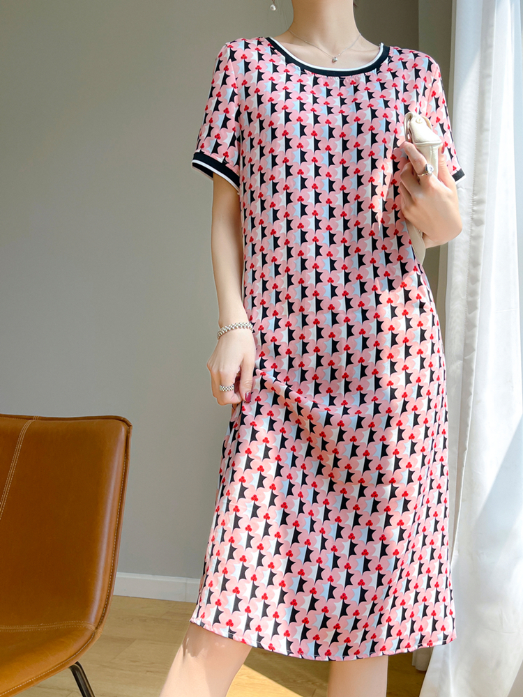 夏季真丝连衣裙短袖大码