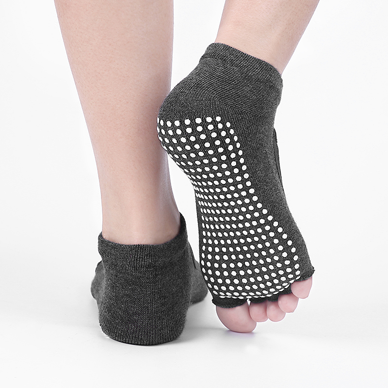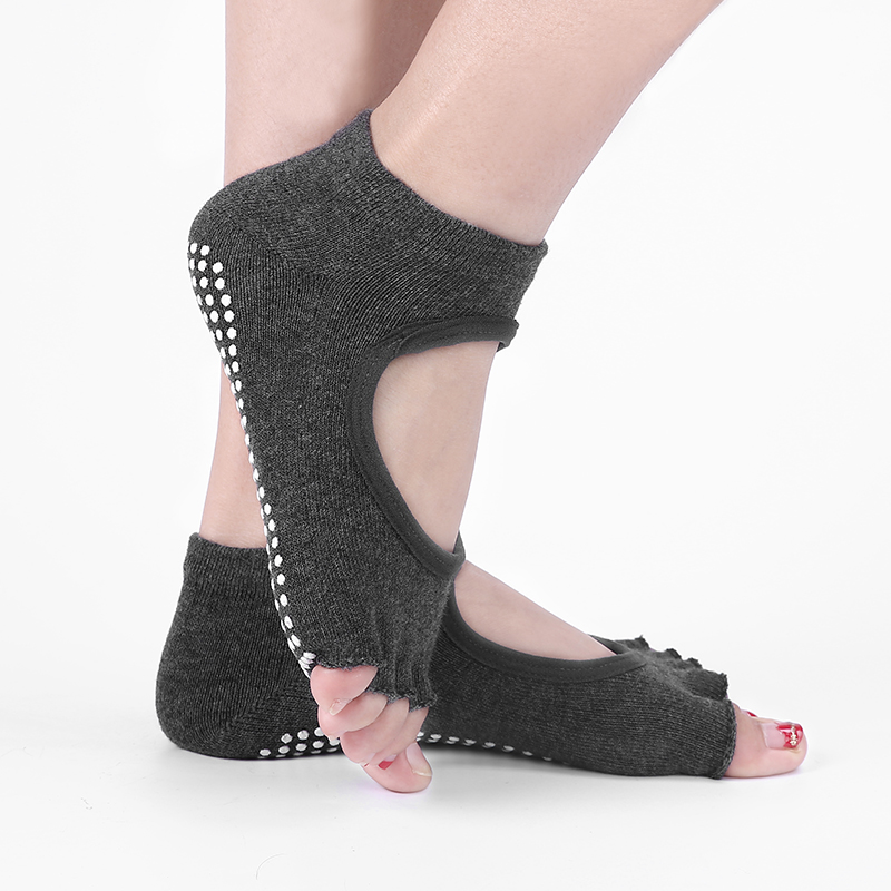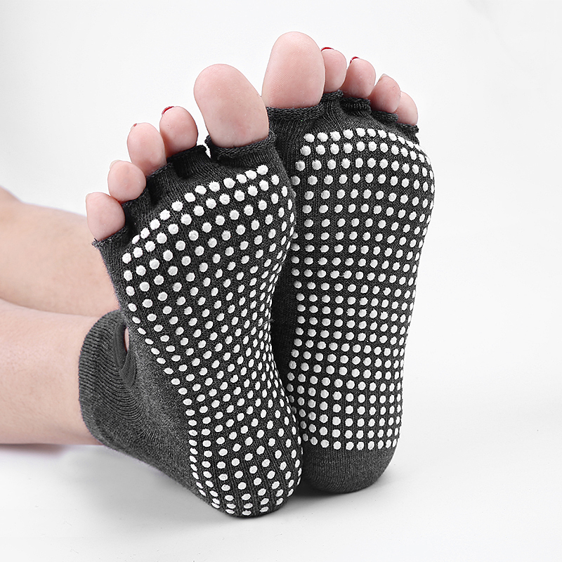 瑜伽五指袜挖孔露背男女儿童专业脚趾分开中筒防滑半露趾纯棉袜子