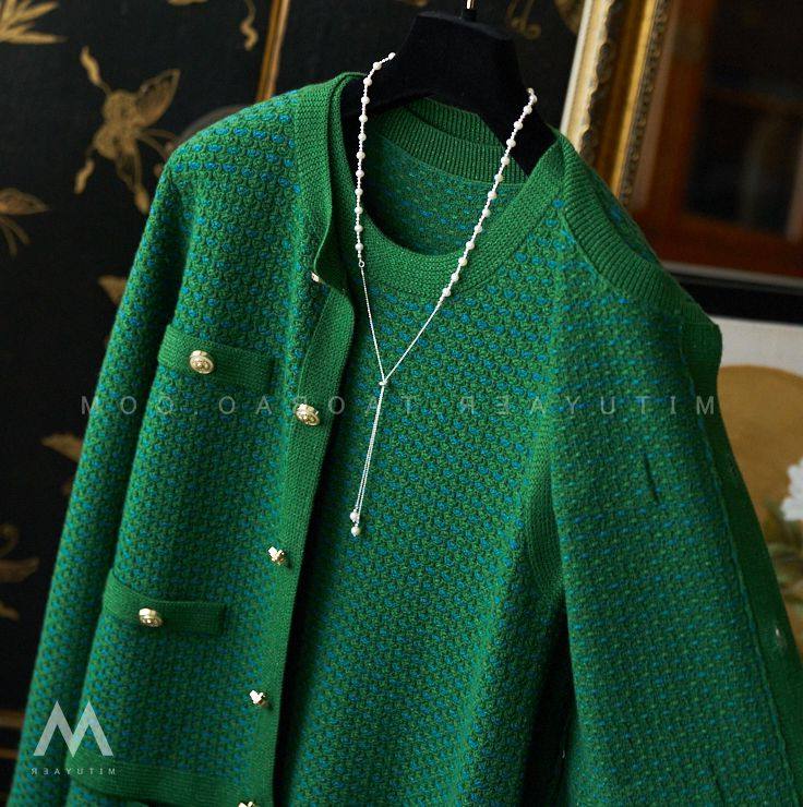 一线品牌折扣出口撤柜女装立体编织闪闪羊毛针织开衫+背心裙套装