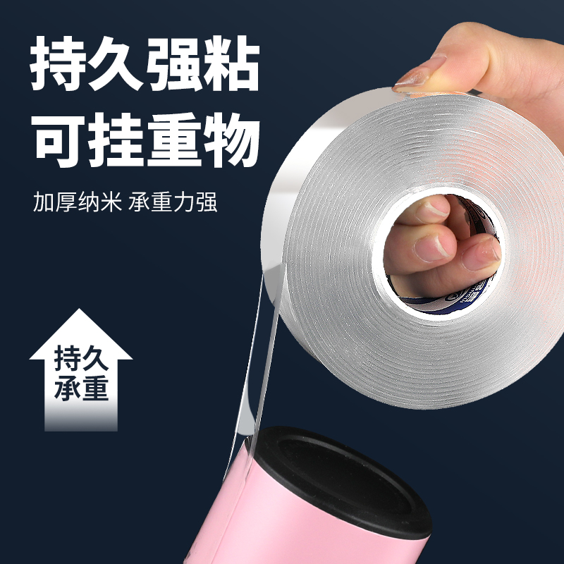 纳米双面胶高粘度透明强力墙面固定无痕魔力车用双面胶贴耐高温加粘纳米胶不留胶痕防水亚克力两面胶贴