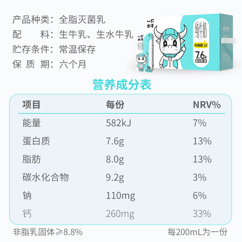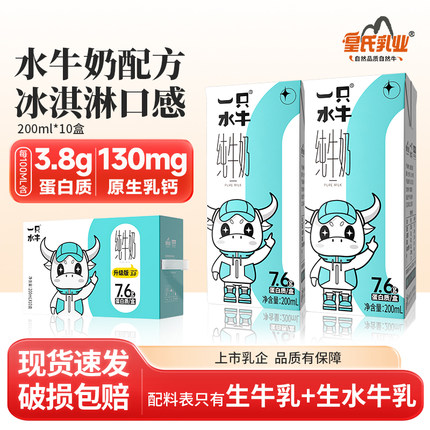 皇氏乳业一只水牛纯牛奶200ml*10盒水牛奶配方儿童学生高钙牛奶